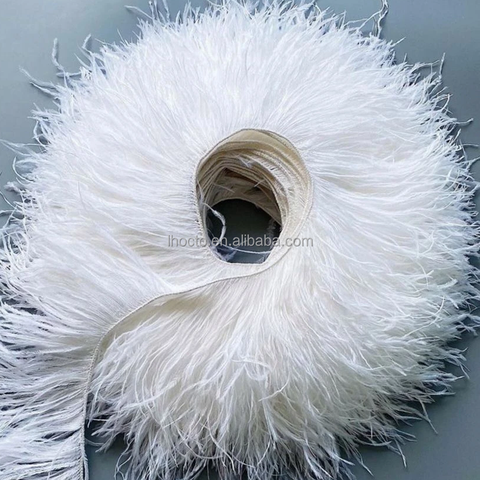 ผ้าลูกไม้ขนนกคุณภาพสูง8-18ซม. สำหรับตัดเย็บขอบและขอบขนนกกระจอกเทศ
